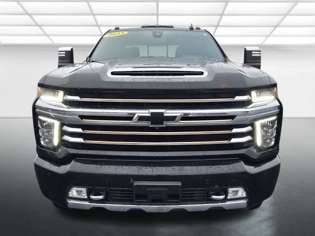 Blue Advantage Certified, 10-Speed Automatic, 4WD, Jet Black/Umber Leather, 12-Volt Rear Auxiliary Power Outlet, 120-Volt Bed Mounted Power Outlet, 120-Volt Instrument Panel Power Outlet, 170 Amp Alternator, 2nd Row Dual USB Charge-Only Ports, 6" Rectangular Chromed Tubular Assist Steps, 8" Driver Information Center, Advanced Trailering System, Auto-Dimming Inside Rear-View Mirror, Bed View Camera w/2 Trailer Camera Provisions, Bluetooth® For Phone, Bose Premium 7 Speaker Sound System, Chevytec Spray-On Black Bedliner, Chrome Front Grille Bar w/Chrome Grille Inserts, Chrome Mirror Caps, Color-Keyed Carpeting Floor Covering, Compass Located In Instrument Cluster, Deep-Tinted Glass, Electric Rear-Window Defogger, Electrical Lock Control Steering Column, Front Carpeted Floor Mats, Front Chrome Recovery Hooks, Front LED Fog Lamps, Gooseneck/5th Wheel Prep Package, HD Surround Vision w/2 Trailer View Camera Provisions, Heated 2nd Row Outboard Seats, Heated Steering Wheel, High Country Deluxe, Hitch Guidance w/Hitch View, Integrated Trailer Brake Controller, Keyless Open & Start, Lane Change Alert w/Side Blind Zone Alert, LED Cargo Area Lighting, Manual Tilt/Telescoping Steering Column, Navigation System, OnStar & Chevrolet Connected Services Capable, Polished Exhaust Tip, Power Door Locks, Power Front Passenger Windows w/Express Up/Down, Power Front Windows w/Driver Express Up/Down, Power Rear Windows w/Express Down, Power Sliding Rear Window w/Defogger, Power-Adjustable Outside Mirrors, Preferred Equipment Group 3LZ, Rear Carpeted Floor Mats, Rear Cross Traffic Alert, Rear Wheelhouse Liners, Remote Vehicle Starter System, Safety Package II, SiriusXM w/360L, Standard Tailgate, Steering Wheel Audio Controls, Steering Wheel Mounted Electronic Cruise Control, Suspension Package, Technology Package, Ultrasonic Front & Rear Park Assist, Unauthorized Entry Theft-Deterrent System, Universal Home Remote, Up-Level Rear Seat w/Storage Package, Wi-Fi Hotspot Capable, Wireless Charging, Wireless Phone Projection, Wrapped Steering Wheel, 10-Way Power Driver Seat Adjuster w/Lumbar, 10-Way Power Passenger Seat Adjuster w/Lumbar, 220 Amp Alternator, 4-Wheel Disc Brakes, 7 Speakers, ABS brakes, Air Conditioning, Alloy wheels, AM/FM radio: SiriusXM with 360L, Apple CarPlay/Android Auto, Auto-dimming door mirrors, Auto-Dimming Inside Rearview Mirror w/Camera, Auto-dimming Rear-View mirror, Automatic Emergency Braking, Automatic temperature control, Brake assist, Bumpers: body-color, Chevrolet Connected Access Capable, Compass, Delay-off headlights, Driver door bin, Driver Memory, Driver vanity mirror, Dual front impact airbags, Dual front side impact airbags, Durabed Pickup Bed, Electronic Stability Control, Engine Block Heater, Exhaust Brake, Floor-Mounted Center Console, Following Distance Indicator, Forward Collision Alert, Front anti-roll bar, Front Black Bowtie Emblem (LPO), Front Bucket Seats, Front Center Armrest, Front dual zone A/C, Front fog lights, Front License Plate Kit, Front reading lights, Front wheel independent suspension, Fully automatic headlights, Garage door transmitter, Heated door mirrors, Heated Drive
