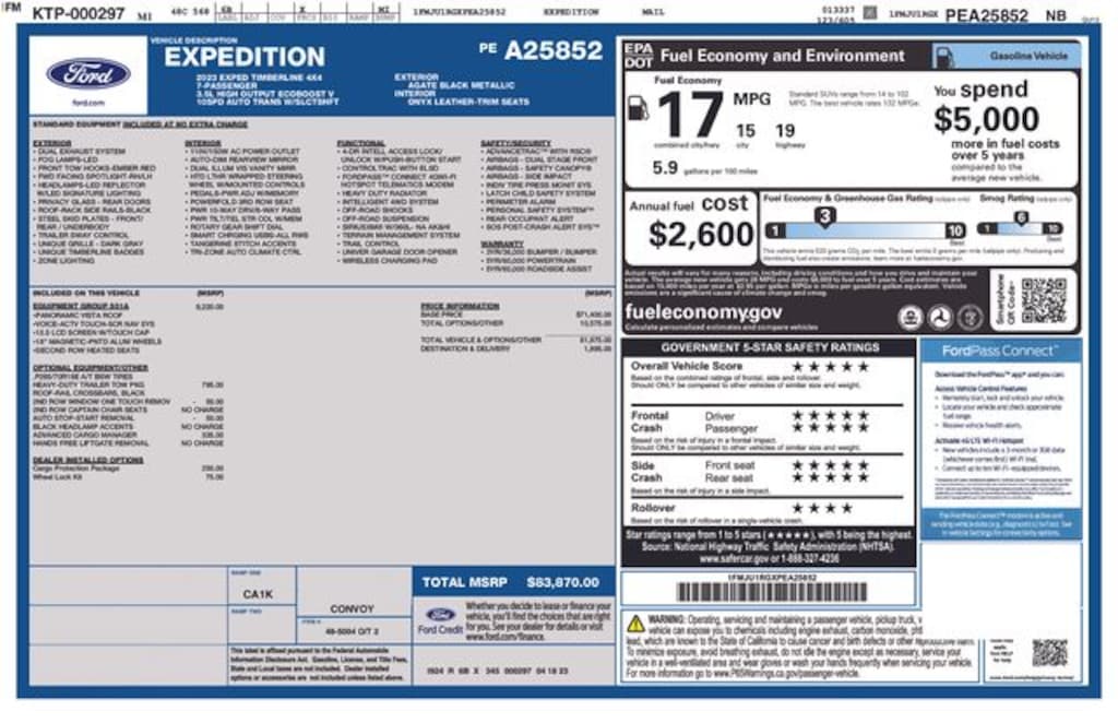 Agate Black Metallic 2023 Ford Expedition Timberline 4D Sport Utility 4WD 10-Speed Automatic 3.5L V6