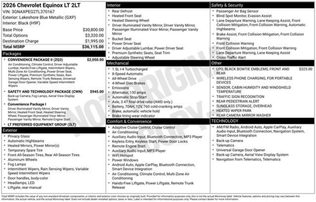 WE DELIVER! BUY ONLINE-TEXT-EMAIL-CHAT-PHONE AND WE WILL DELIVER YOUR NEXT VEHICLE TO YOUR DOOR! FROM OUR SALES FLOOR TO YOUR DOOR! IT'S THAT EASY! All New Car Pricing Assumes GMS Employee Qualifications. Recent Arrival! Lakeshore Blue Metallic 2026 Chevrolet Equinox LT AWD 8-Speed Automatic 1.5L DOHC