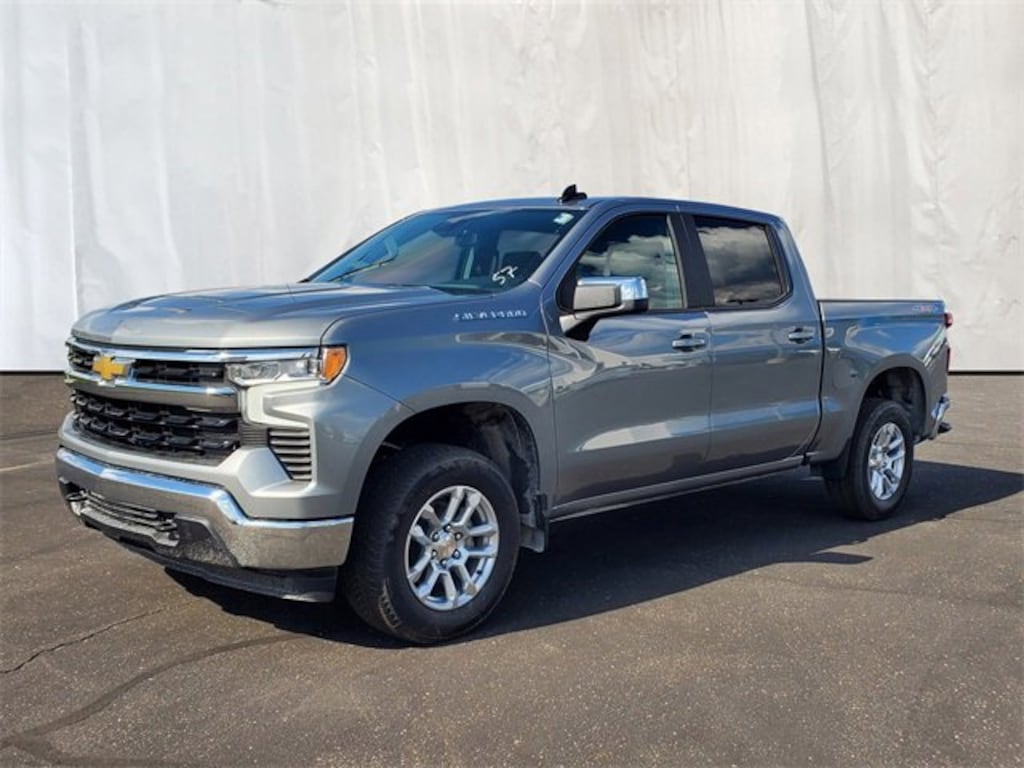Silverado 1500 LT LT1, 4D Crew Cab, EcoTec3 5.3L V8, 10-Speed Automatic, 4WD, Sterling Gray Metallic, Black Cloth, 10-Way Power Driver Seat w/Lumbar, 12.3 Multicolor Reconfigurable Digital Display, 120-Volt Bed Mounted Power Outlet, 120-Volt Interior Power Outlet, All-Star Edition, Auto-Locking Rear Differential, Bluetooth® For Phone, Chrome Mirror Caps, Color-Keyed Carpeting Floor Covering, Convenience Package, Deep-Tinted Glass, Dual Rear USB Ports (Charge Only), Dual-Zone Automatic Climate Control, Electric Rear-Window Defogger, Electronic Cruise Control, EZ Lift Power Lock & Release Tailgate, Front Frame-Mounted Black Recovery Hooks, Front Rubberized Vinyl Floor Mats, HD Rear Vision Camera, Heated Driver & Front Outboard Passenger Seats, Heated Power-Adjustable Outside Mirrors, Heated Steering Wheel, Hitch Guidance, Inside Rear-View Mirror w/Tilt, Integrated Trailer Brake Controller, Keyless Open & Start, LED Cargo Area Lighting, Manual Tilt/Telescoping Steering Column, OnStar Services Capable, Power Front Windows w/Driver Express Up/Down, Power Front Windows w/Passenger Express Down, Power Rear Windows w/Express Down, Preferred Equipment Group 1LT, Rear 60/40 Folding Bench Seat (Folds Up), Rear Rubberized-Vinyl Floor Mats, Remote Start Package, Remote Vehicle Starter System, SiriusXM w/360L Trial Subscription, Standard Suspension Package, Standard Tailgate, Steering Wheel Audio Controls, Teen Driver, Theft Deterrent System (Unauthorized Entry), Tire Pressure Monitoring System, Trailering Package, Wi-Fi Hot Spot Capable, Wrapped Steering Wheel, 170 Amp Alternator, 220 Amp Alternator, 3.23 Rear Axle Ratio, 4-Wheel Disc Brakes, 40/20/40 Front Split-Bench Seat, 6 Speakers, 6-Speaker Audio System, ABS brakes, Air Conditioning, Alloy wheels, AM/FM radio: SiriusXM with 360L, Apple CarPlay/Android Auto, Auto High-beam Headlights, Automatic Emergency Braking, Automatic temperature control, Auxiliary External Transmission Oil Cooler, Brake assist, Bumpers: chrome, Cloth Seat Trim, Compass, Delay-off headlights, Driver door bin, Driver vanity mirror, Dual front impact airbags, Dual front side impact airbags, Electronic Stability Control, Emergency communication system: OnStar, External Engine Oil Cooler, Following Distance Indicator, Forward Collision Alert, Front anti-roll bar, Front Center Armrest w/Storage, Front dual zone A/C, Front Pedestrian Braking, Front reading lights, Front wheel independent suspension, Fully automatic headlights, Heated door mirrors, Heated front seats, Heated steering wheel, Illuminated entry, IntelliBeam Automatic High Beam On/Off, Lane Keep Assist w/Lane Departure Warning, Low tire pressure warning, Occupant sensing airbag, Outside temperature display, Overhead airbag, Overhead console, Panic alarm, Passenger door bin, Passenger vanity mirror, Power door mirrors, Power driver seat, Power steering, Power windows, Premium audio system: Chevrolet Infotainment 3 Premium, Radio data system, Radio: Chevrolet Infotainment 3 Premium System, Rear reading lights, Rear step bumper, Rear window defroster, Remote keyless entry, Security system, Speed control, Speed-sensing steering, Split folding rear seat, Steering wheel mounted audio controls, Tachometer, Telescoping steering wheel, Tilt steering wheel, Traction control, Trip computer, Variably intermittent wipers, Voltmeter, Wheels: 17 x 8 Bright Silver Painted Aluminum, Wheels: 18 x 8.5 Bright Silver Painted Aluminum, Silverado 1500 LT LT1, 4D Crew Cab, EcoTec3 5.3L V8, 10-Speed Automatic, 4WD,