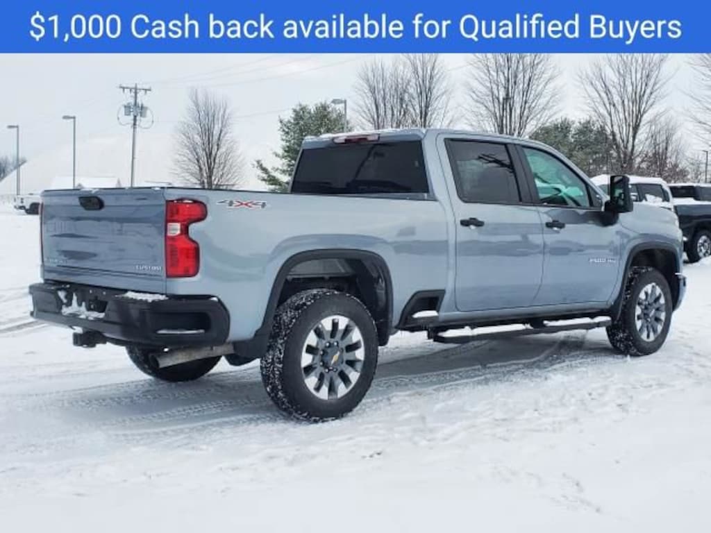 Price includes: $1000 - Chevrolet Consumer Cash Program. Exp. 01/02/2026 WE DELIVER! BUY ONLINE-TEXT-EMAIL-CHAT-PHONE AND WE WILL DELIVER YOUR NEXT VEHICLE TO YOUR DOOR! FROM OUR SALES FLOOR TO YOUR DOOR! IT'S THAT EASY! All New Car Pricing Assumes GMS Employee Qualifications. Recent Arrival! Sterling Gray Metallic 2026 Chevrolet Silverado 2500HD Custom 4WD 10-Speed Automatic 6.6L V810-Speed Automatic, 4WD, Black Cloth, 10-Way Power Driver Seat Adjuster w/Lumbar, 120-Volt Bed Mounted Power Outlet, 120-Volt Interior Power Outlet, 170 Amp Alternator, 2-Speed Electronic Shift Transfer Case, 220 Amp Alternator, 3.5 Diagonal Monochromatic Display DIC, 3.73 Rear Axle Ratio, 4-Wheel Disc Brakes, 6 Speakers, 6-Speaker Audio System, 6 Rectangular Black Tubular Assist Steps (LPO), 720 Cold-Cranking Amps Heavy-Duty Battery, ABS brakes, Air Conditioning, Alloy wheels, AM/FM radio: SiriusXM with 360L, Apple CarPlay/Android Auto, Auto High-beam Headlights, Auto-Dimming Inside Rear-View Mirror, Bed View Camera, Black Chevytec Spray-On Bedliner, Black Mirror Caps, Bluetooth® For Phone, Brake assist, Chevrolet Connected Access Capable, Cloth Seat Trim, Color-Keyed Carpeting Floor Covering, Compass, Custom Convenience Package, Custom Value Package, CX Safety Package, Deep-Tinted Glass, Delay-off headlights, Driver door bin, Dual front impact airbags, Dual front side impact airbags, Dual Rear USB Ports (Charge Only), Durabed Pickup Bed, Electric Rear-Window Defogger, Electronic Cruise Control w/Set & Resume Speed, Electronic Stability Control, Emergency communication system: OnStar, EZ Lift Power Lock & Release Tailgate, Front 40/20/40 Split-Bench Seats w/Lockable Storage, Front anti-roll bar, Front Center Armrest w/Storage, Front reading lights, Front Rubberized Vinyl Floor Mats, Front wheel independent suspension, Fully automatic headlights, Gooseneck/5th Wheel Prep Package, HD Rear Vision Camera, Heated & Auto-Dimming Vertical Trailering Mirrors, Heated door mirrors, Heated Vertical Trailering Mirrors, Illuminated entry, Inside Rear-View Auto-Dimming Mirror, Lane Change Alert w/Side Blind Zone Alert, LED Cargo Area Lighting, LED Smoked Amber Roof Marker Lamps, Locking Tailgate, Low tire pressure warning, Manual Tailgate Function w/No EZ Lift, Manual Tilt-Wheel Steering Column, Occupant sensing airbag, OnStar Services Capable, Outside temperature display, Overhead airbag, Overhead console, Panic alarm, Passenger door bin, Passenger vanity mirror, Power Door Locks, Power door mirrors, Power Front Windows w/Driver Express Up/Down, Power Front Windows w/Passenger Express Down, Power Rear Windows w/Express Down, Power steering, Power windows, Preferred Equipment Group 1CX, Premium audio system: Chevrolet Infotainment 3, Push Button Start, Radio: Chevrolet Infotainment 3 System, Rear 60/40 Folding Bench Seat (Folds Up), Rear Cross Traffic Alert, Rear reading lights, Rear Rubberized Vinyl Floor Mats, Rear step bumper, Remote Keyless Entry, Remote keyless entry, Remote Vehicle Starter System, SiriusXM w/360L Trial Subscription, Snow Plow Prep/Camper Package, Speed control, Split folding rear seat, Standard Tailgate, Suspension Package, Tachometer, Tilt steering wheel, Traction control, Trip computer, Turn signal indicator mirrors, Ultrasonic Front & Rear Park Assist, Unauthorized Entry Theft-Deterrent System, Variably intermittent wipers, Voltmeter, Wheels: 20 10-Spoke Machined Aluminum, Wi-Fi Hotspot Capable, Wireless Phone Projection, 10-Speed Automatic, 4WD, Black Cloth.