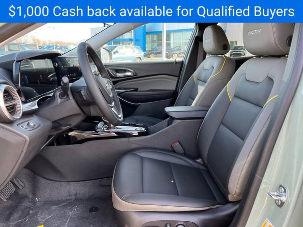 Price includes: $500 - Chevrolet GM Financial APR & NCC Consumer Cash Program: $500 discount and 5.69% APR for 36 months. $30.28 per $1000 financed. Available to well qualified buyers who finance through GM Financial. XGQ, NCC. Exp. 03/02/2026 This rebate is only available if you also take the 'Chevrolet GM Financial APR & NCC Consumer Cash Program: $500 discount and 5.69% APR for 36 months' rebate. $500 - Chevrolet GMF Bonus Cash Program. Exp. 03/02/2026 WE DELIVER! BUY ONLINE-TEXT-EMAIL-CHAT-PHONE AND WE WILL DELIVER YOUR NEXT VEHICLE TO YOUR DOOR! FROM OUR SALES FLOOR TO YOUR DOOR! IT'S THAT EASY! All New Car Pricing Assumes GMS Employee Qualifications. Recent Arrival! Cacti Green 2026 Chevrolet Trax ACTIV FWD 6-Speed Automatic ECOTEC 1.2L Turbo2-Way Adjustable Front Head Restraints, 2-Way Power Driver Lumbar Seat Adjuster, 3.50 Final Drive Axle Ratio, 4-Way Manual Front Passenger Seat Adjuster, 4-Wheel Disc Brakes, 6 Speakers, 6-Speaker Audio System Feature, 8-Way Power Driver Seat Adjuster, ABS brakes, Adaptive Cruise Control, Air Conditioning, Alloy wheels, AM/FM radio: SiriusXM, Auto High-beam Headlights, Automatic temperature control, Brake assist, Bumpers: body-color, Compass, Delay-off headlights, Driver Confidence Package, Driver door bin, Driver vanity mirror, Dual front impact airbags, Dual front side impact airbags, Electronic Stability Control, Emergency communication system: OnStar One Essentials, Evotex Seat Trim, Exterior Parking Camera Rear, Front anti-roll bar, Front Bucket Seats, Front Center Armrest, Front reading lights, Front wheel independent suspension, Fully automatic headlights, Heated door mirrors, Heated Driver and Front Passenger Seats, Heated front seats, Heated steering wheel, Illuminated entry, Lane Change Alert with Side Blind Zone Alert, Leather steering wheel, Low tire pressure warning, Occupant sensing airbag, Outside temperature display, Overhead airbag, Overhead console, Panic alarm, Passenger door bin, Passenger vanity mirror, Power door mirrors, Power driver seat, Power steering, Power windows, Preferred Equipment Group 1SA, Premium audio system: Chevrolet Infotainment 3, Radio data system, Radio: AM/FM Stereo Audio System, Rear Cross Traffic Alert, Rear Park Assist, Rear window defroster, Rear window wiper, Remote keyless entry, Security system, SiriusXM Trial Subscription, Speed control, Split folding rear seat, Spoiler, Steering wheel mounted audio controls, Tachometer, Telescoping steering wheel, Tilt steering wheel, Traction control, Trip computer, Variably intermittent wipers, Wheels: 18 Black-Painted Aluminum, Wireless Apple CarPlay/Wireless Android Auto.28/32 City/Highway MPG
