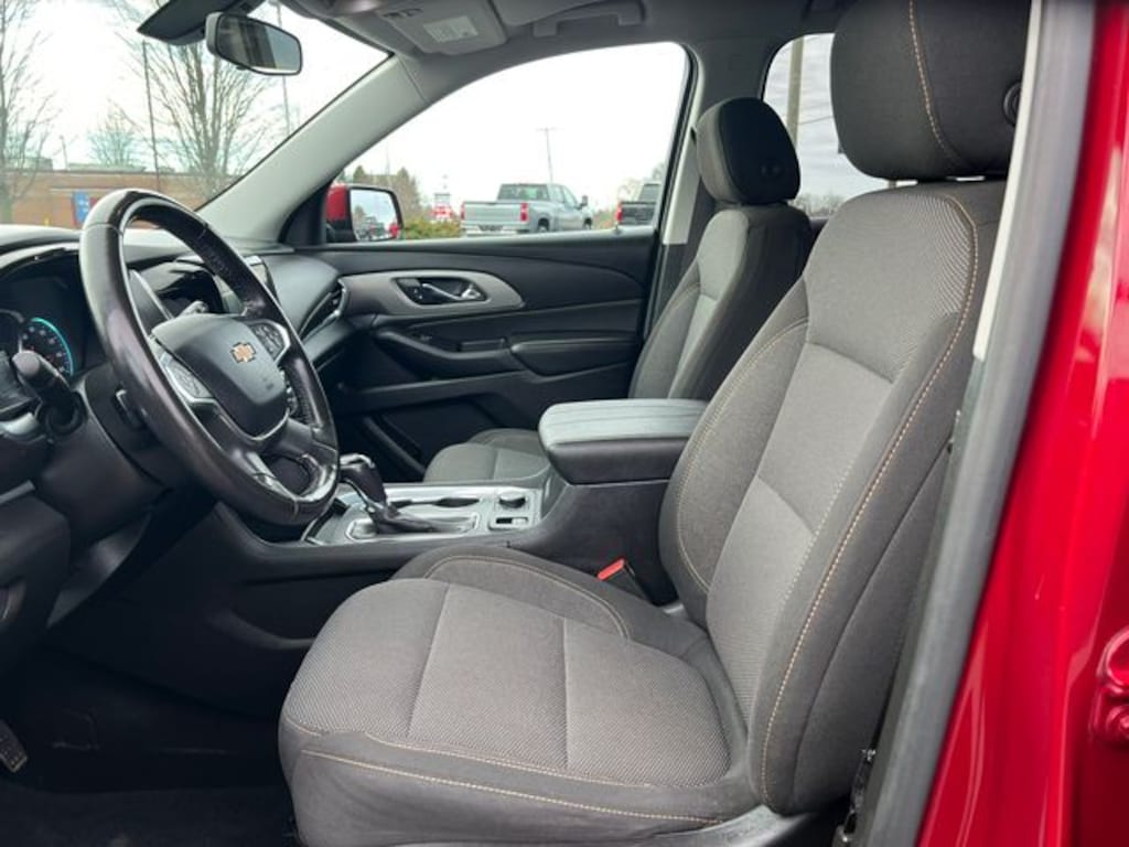 The Traverse LT Cloth w/1LT is equipped with a powerful 3.6L V6 SIDI VVT engine mated to a smooth-shifting 9-Speed Automatic transmission, delivering a remarkable balance of performance and efficiency with an EPA-estimated 17 city/25 highway MPG.