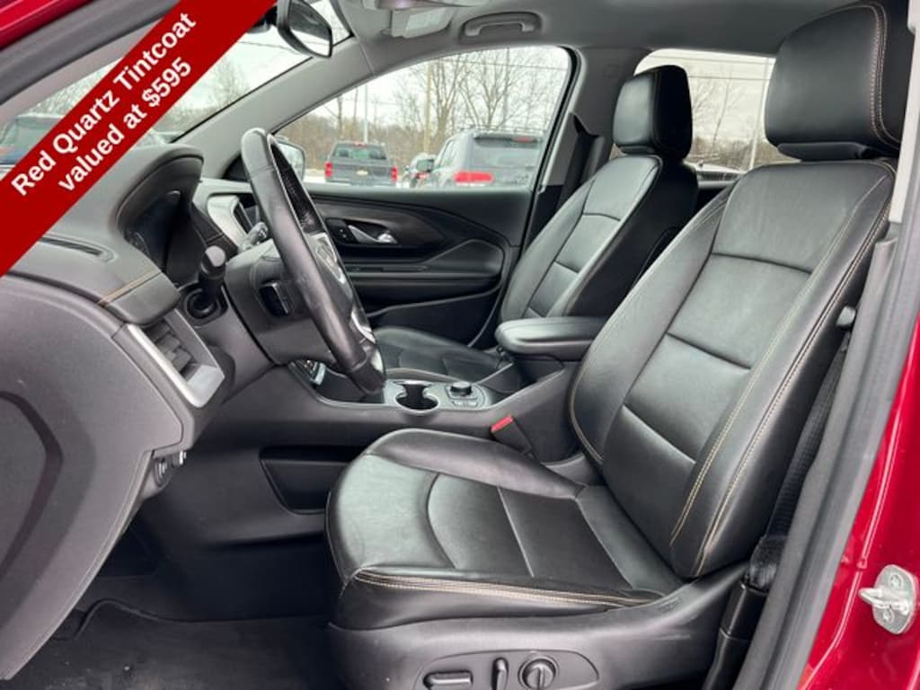 The interior of the Terrain SLT is designed with your comfort and convenience in mind. Luxurious perforated leather-appointed seats, a heated steering wheel, and dual-zone automatic climate control ensure a premium driving experience. The spacious cabin offers ample room for passengers and cargo, with the added convenience of a hands-free power liftgate and integrated cargo liner.